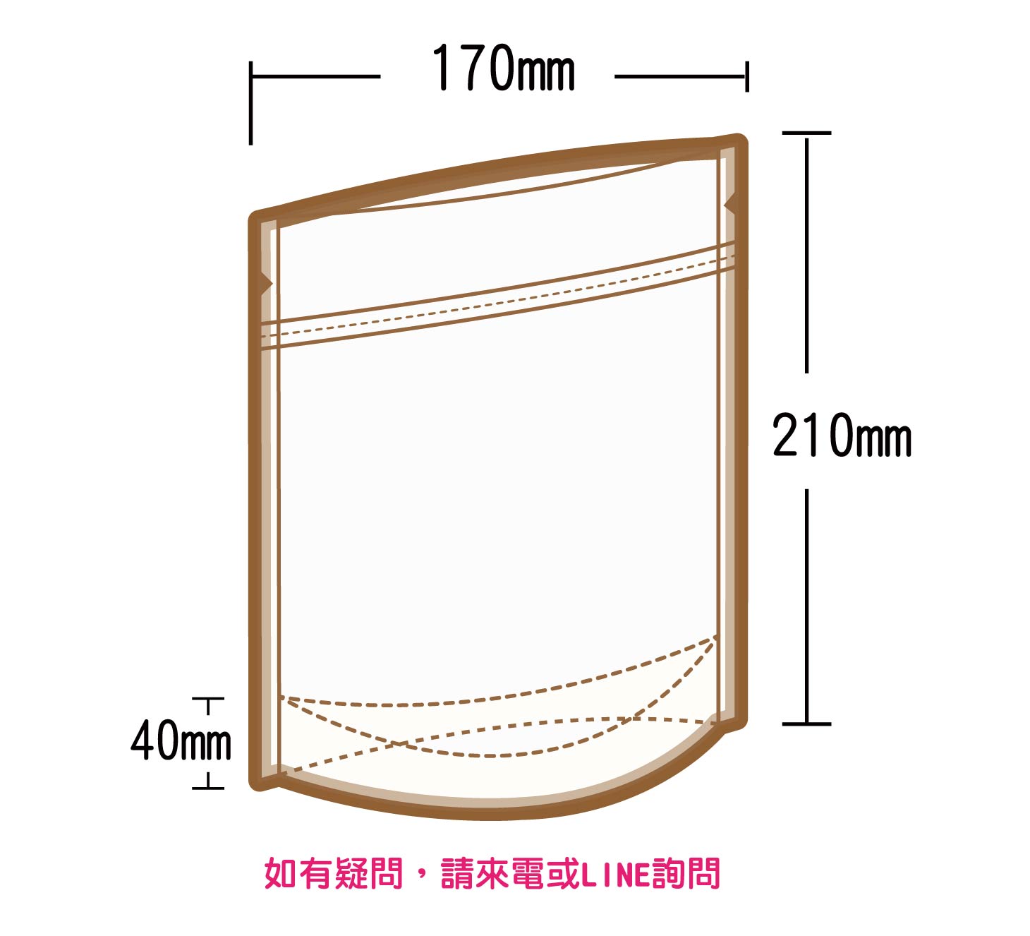 夾鏈立袋U底 W170xH210+40mm(BMKPETPE90)(中半斤)