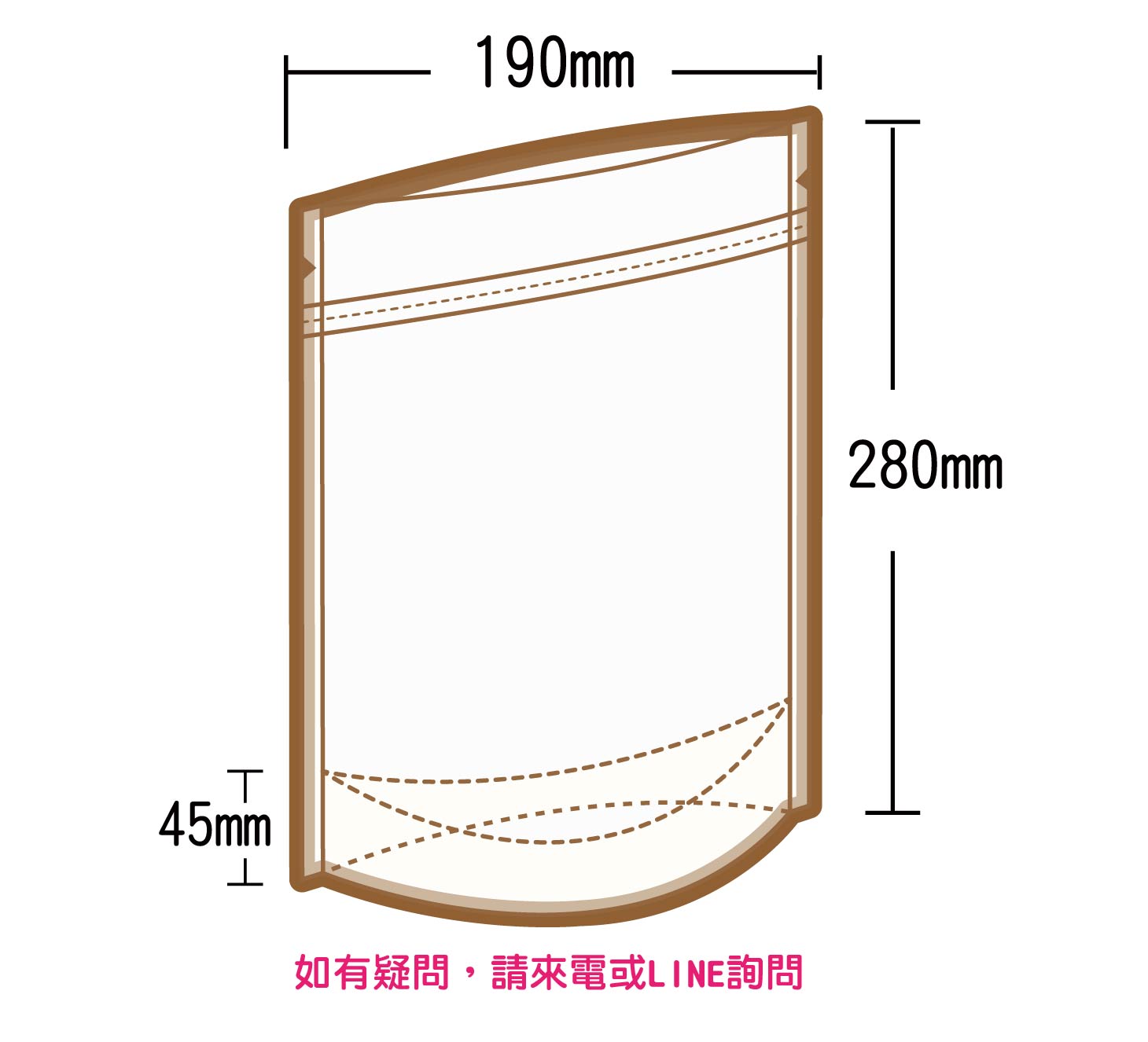 夾鏈立袋U底 W190xH280+45mm(BMKPETPE90)(1磅)